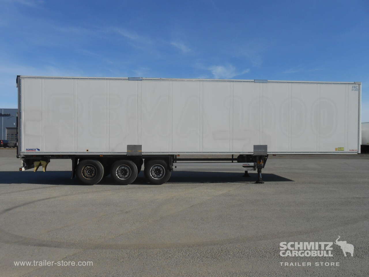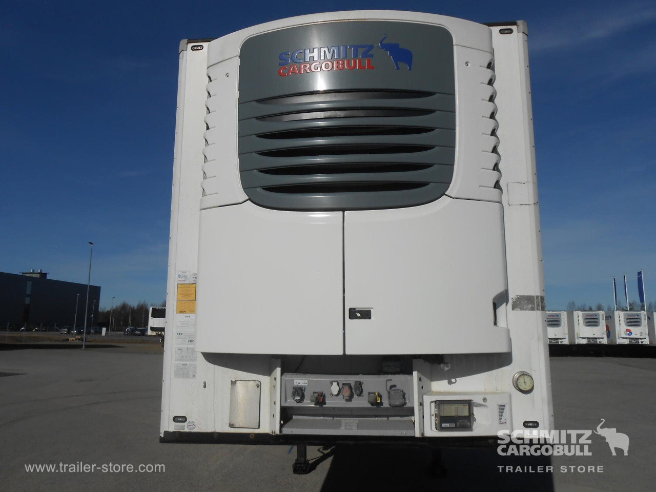 Remarks: **Safety**\\Rear underrun, Antilock Braking System ABS\\\\**Exterior**\\Air suspension, 1x15 and 2x7 pin plug, Antispray\\\\**Cooling unit**\\Schmitz Cargobull, 13.602 Operating hours Diesel, 75 Operating hours electric\\\\**Loading area**\\Length 13.403 mm, Width 2.490 mm, Height 2.700 mm, Volume 90 m³\\\\**Tyre sizes**\\1. Achse: 385/65 R22.5 , Tread depth: 13 mm / 13 mm, 2. Achse: 385/65 R22.5 , Tread depth: 9 mm / 10 mm, 3. Achse: 385/65 R22.5 , Tread depth: 12 mm / 13 mm\\\\**Other dimensions and weights**\\Wheel base: 8.100 mm\\\\----Some wear and tear.270 internal height 18t king pinMOT/PKK 17/9/25