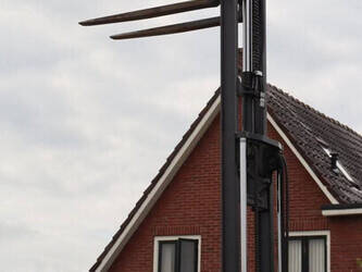 Machine start, rijdt, heft en daalt.
