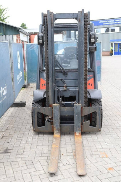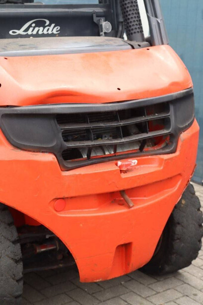 Brand: Linde Type: H40D-02 Serial number: H2X394X50042 Year of construction: 2020 Fuel: Diesel Mast type: Duplex Sideshift: No Lifting capacity: 4000 kg Lifting height: 3250 mm Reading operating hours: 1012 h Machine weight: 5935 kg Tires: Solid tires Color: orange