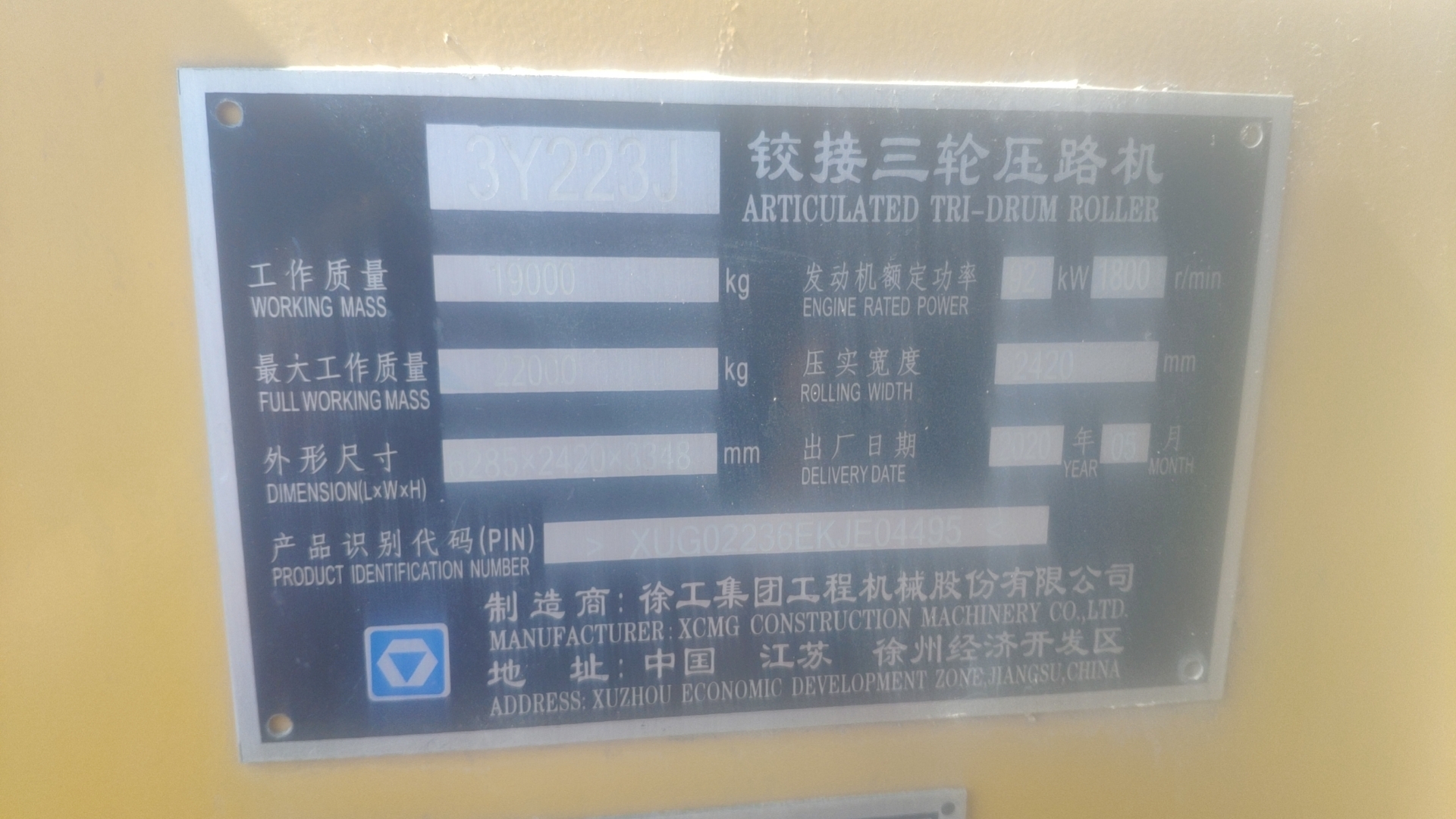 XCMG high quality vibratory plate compactor 3Y223J roller drum used China for sale