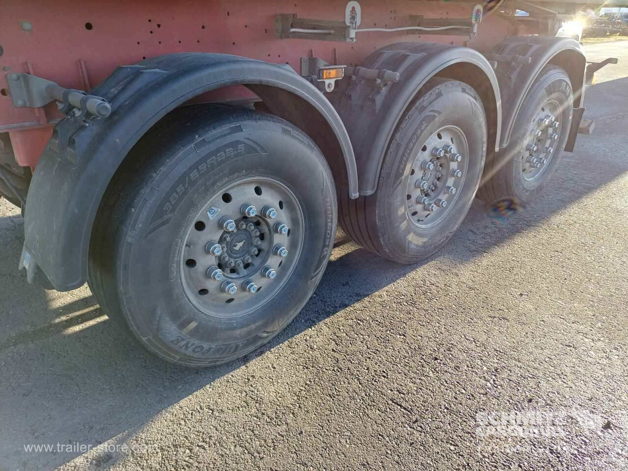 Remarks: **Safety**\\Hinged rear underrun, Antilock Braking System ABS, Brake wear indicator\\\\**Exterior**\\Air suspension, Lift axle front, Exterior pendulum tailgate, Roof rolling tarpaulin, Access platform, 1x15 and 2x7 pin plug, Antispray, Light alloy rims\\\\**Brake system**\\Disc brake, Schmitz ROTOS\\\\**Loading area**\\Length 7.500 mm, Width 2.440 mm, Height 1.500 mm, Volume 27 m³\\\\**Tyre sizes**\\1. Achse: 385/65 R22.5 , Tread depth: 11 mm / 12 mm, 2. Achse: 385/65 R22.5 , Tread depth: 10 mm / 14 mm, 3. Achse: 385/65 R22.5 , Tread depth: 9 mm\\\\**Other dimensions and weights**\\GVW: 36.000 kg\\\\----