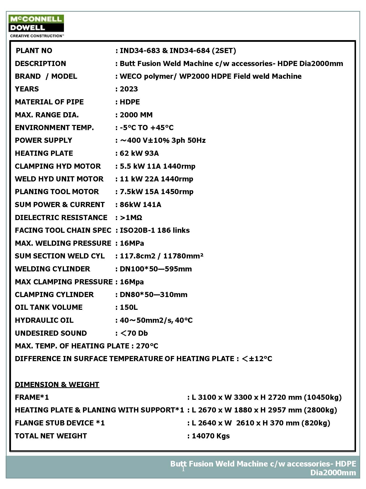 2 sets OF MACHINES ARE CURRENTLY AVAILABLE AT INDONESIA, BATU HIJAU.
