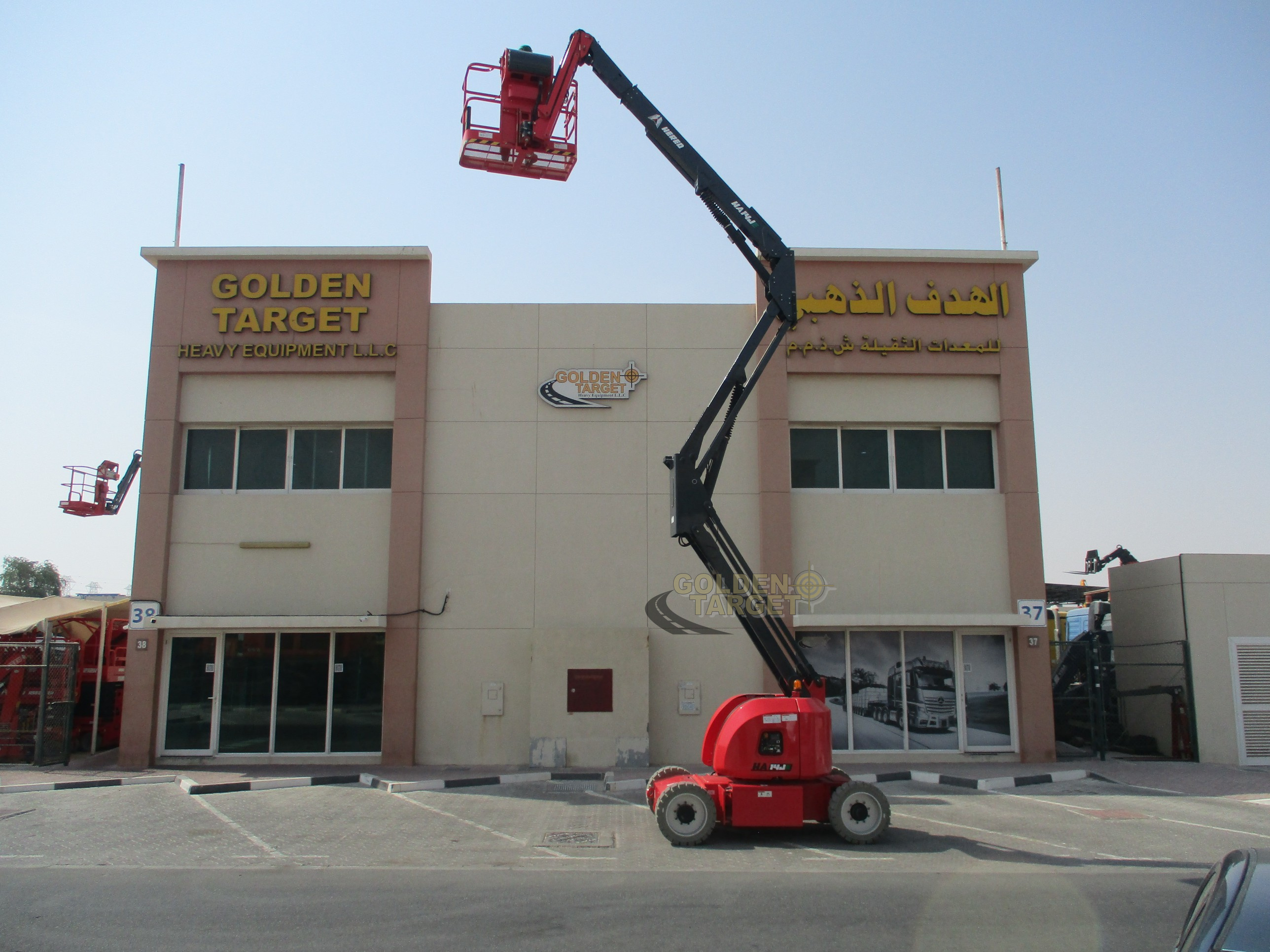 HERED HA14JE Electric Articulated Boom Lift; Batteries (V/Ah): 48V/310Ah; Charger: 100-240VAC/13.5A; 16m max Working Height, 230kg Lift Capacity.