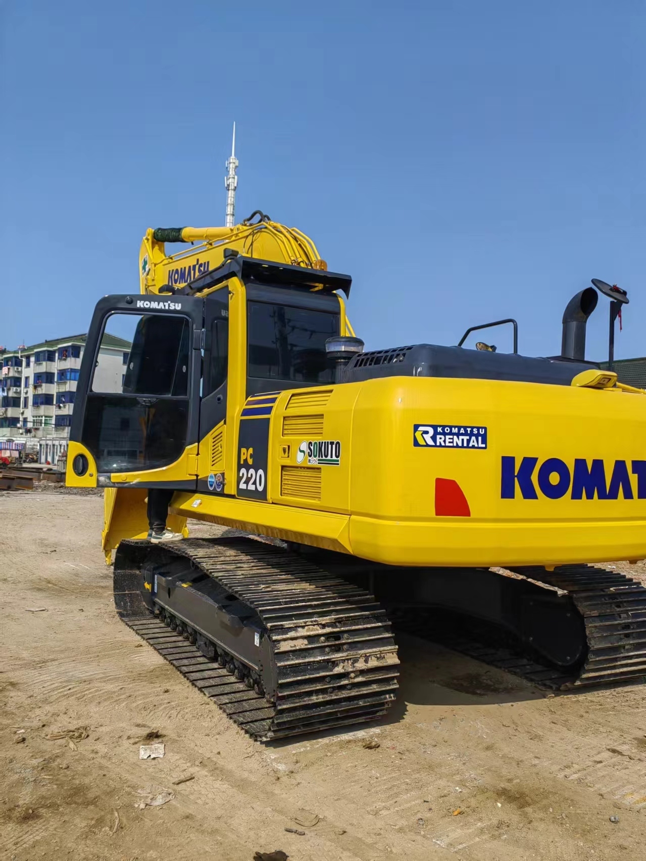 The Komatsu PC220-8 is a 22-ton tracked backhoe hydraulic excavator. It uses a conventional power system and is suitable for general engineering operations, covering earthwork excavation, foundation construction, material handling, and other tasks. The machine has a working weight of 23,100 kg and a standard bucket capacity of 1.0 m³, offering wide applicability and high efficiency in the construction industry.