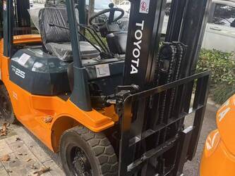 TOYOTA 2.5 TON,The core components are mature, the frame is welded with high-strength steel, the mast is made of thickened steel, the fork has a high wear resistance, and it supports the replacement of forks, pallet clamps, paper roll clamps, side shifters and other accessories. It is suitable for various scenarios such as warehousing and logistics, manufacturing, retail, and building materials industries, covering everything from loading and unloading, stacking to short-distance transportation.