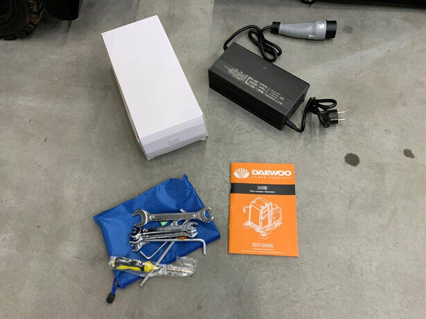 Brand: Daewoo Type: DAS100 Serial number: 22DW02053ALE0100007 Year of construction: 2025 Fuel: Electric Reading operating hours: 1 h Machine weight: 780 kg Battery capacity: 48V/100AH 4 pieces