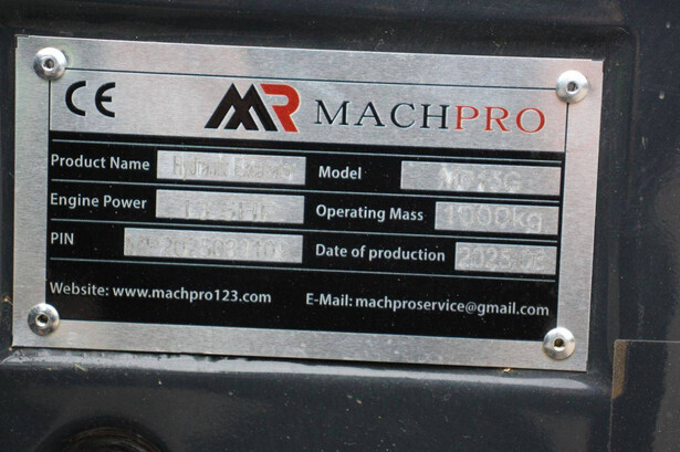 Brand: Machpro Type: MP13G Serial number: MP2025031109 Year of construction: 2025 Fuel: Diesel Engine power: 13.5 HP Quick change: No Reading operating hours: 12 h Running gear: Tracks Machine weight: 1000 kg Color: green