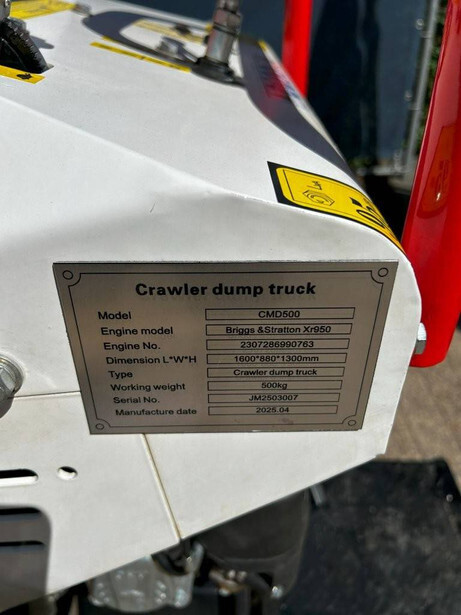 Type: CMD500 Serial number: JM2503007 Year of construction: 2025 Fuel: gasoline Engine power: 6 HP Load capacity: 500 kg Running gear: Tracks Color: white
