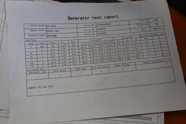 Brand: Ricardo Type: GF2-W100 Year of construction: 2025 Fuel: Diesel Engine Brand: Ricardo Power: 125 kVA Voltage: 380 V Current: 151 A Machine weight: 1860 kg Color: gray