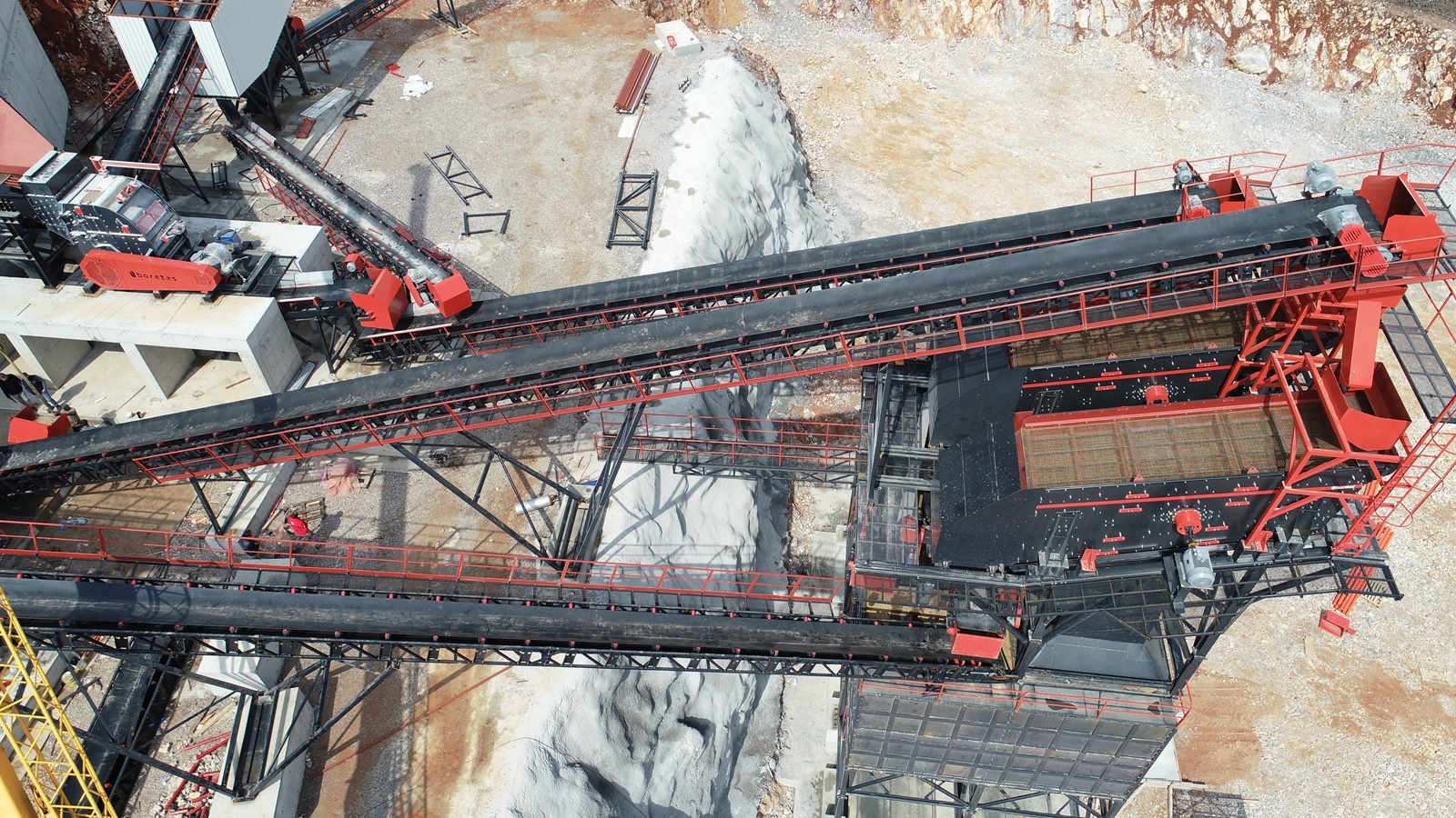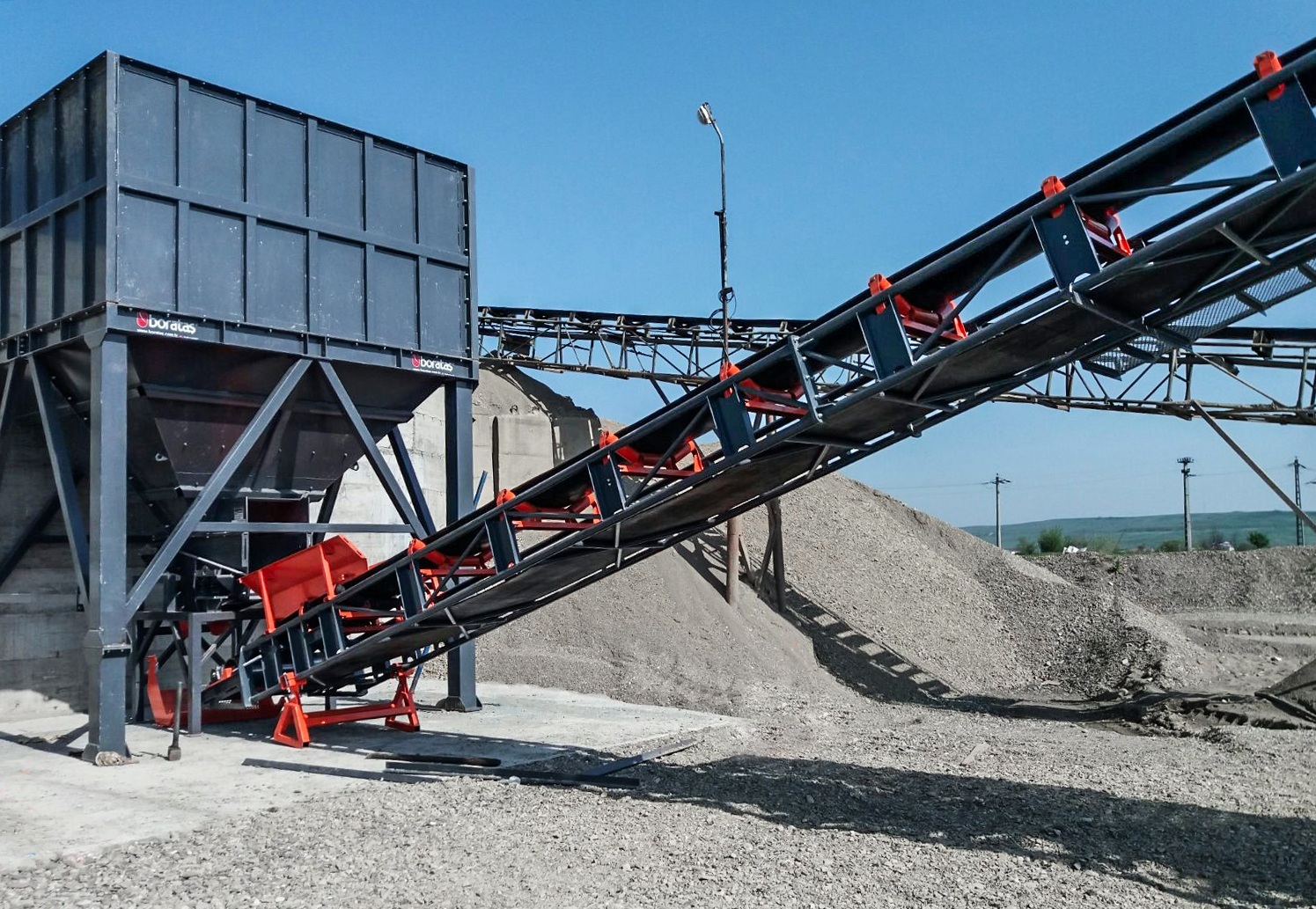 Boratas BOR Series stationary belt conveyors are designed for continuous and reliable material transport in crushing and screening plants. They are used to transfer crushed stone, graded material, and sand between plant unites such as feeders, crushers and screens, or to stockpiles, and discharge points, supporting stable plant flow in quarry and mining operations.