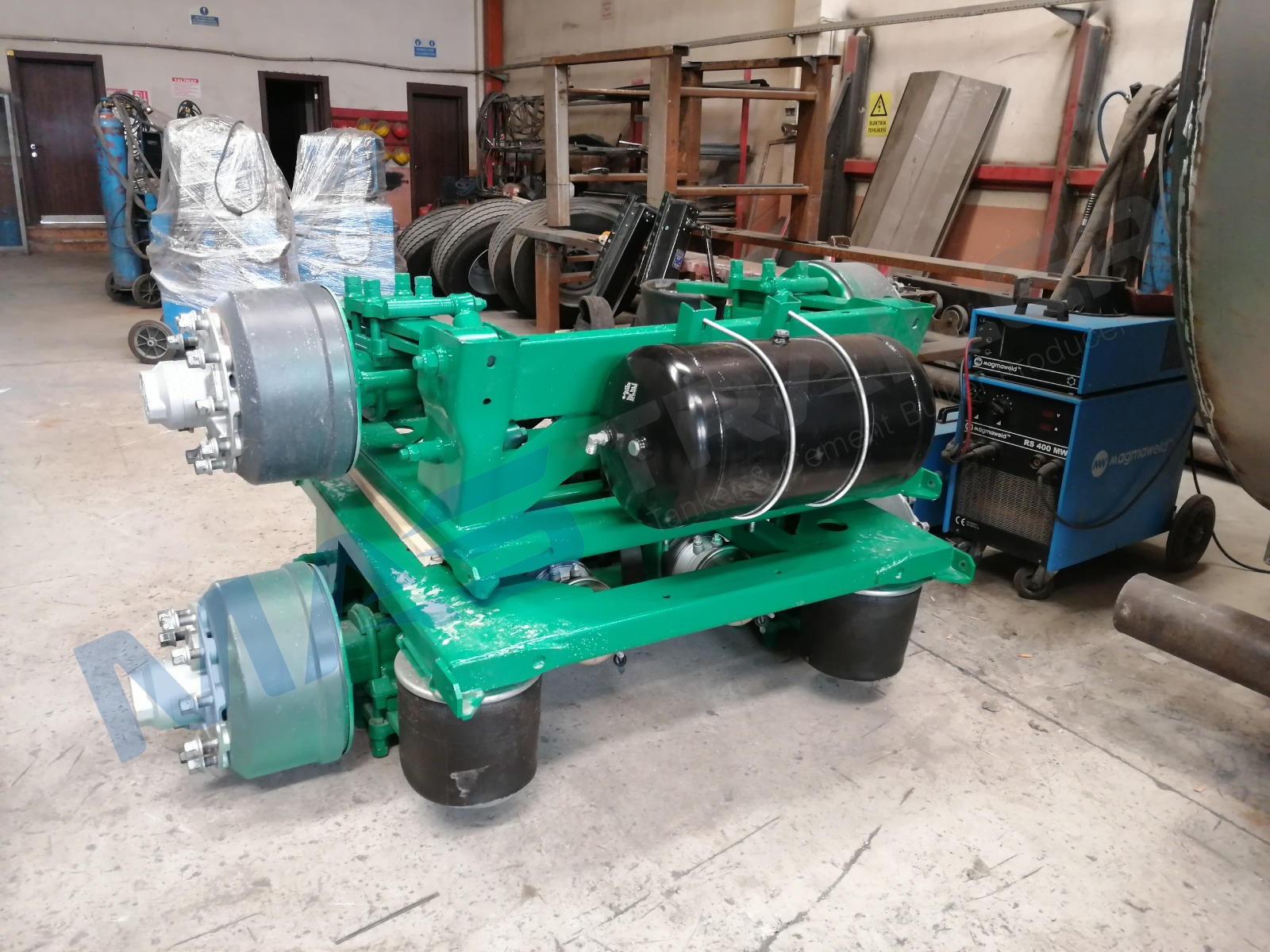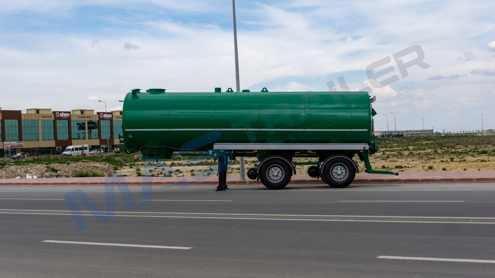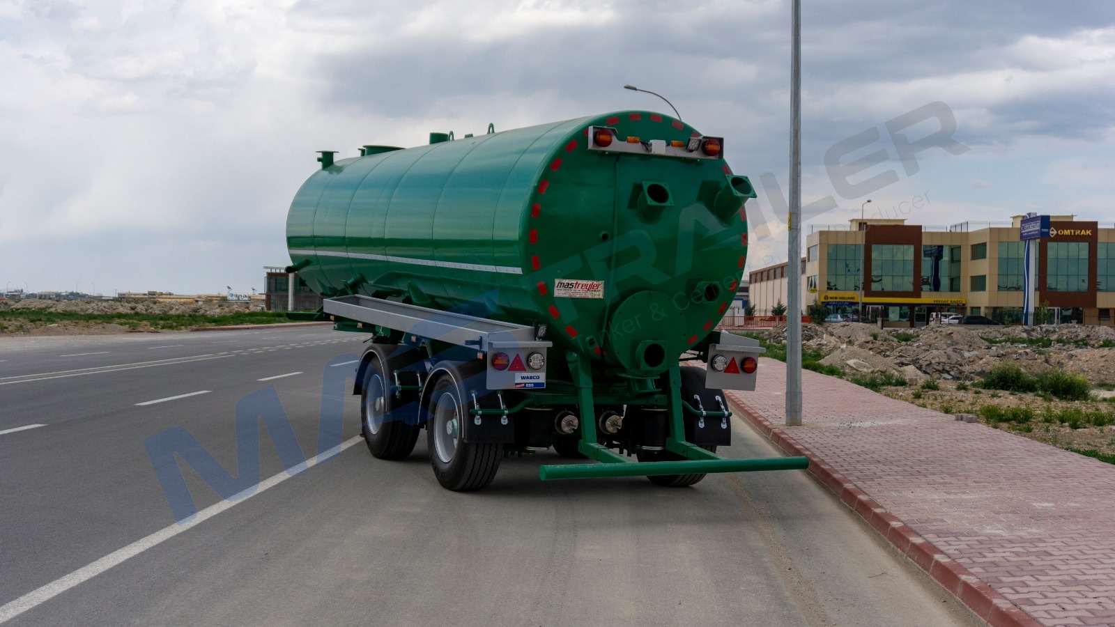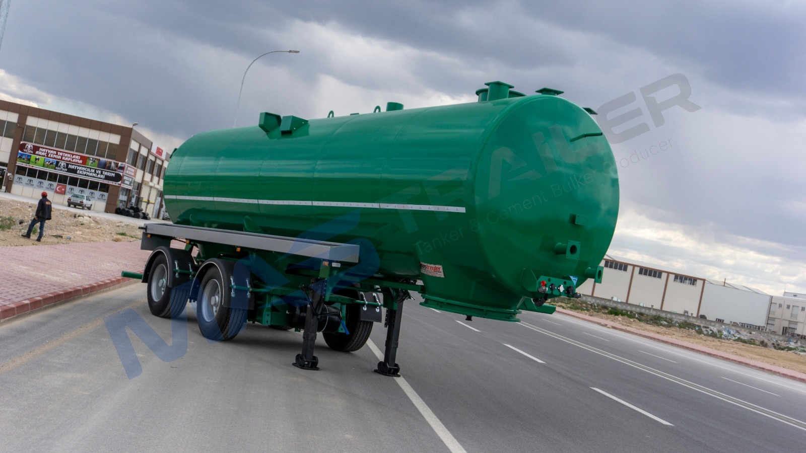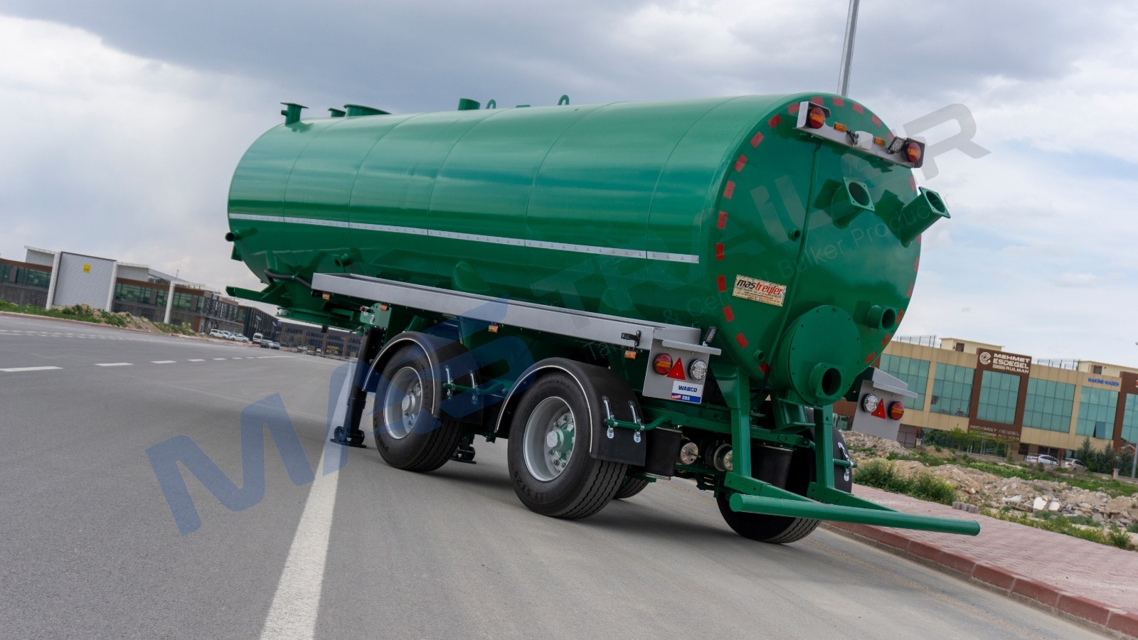 BODY AND CHASSIS FEATURES  Volume: 28 m³  Tank material made of 5 mm quality 4237 steel  Self-supporting chassis type  Rotating kingpin plate BRAKE SYSTEM  Designed according to European regulations using Wabco or Knorr brand components  Automatic brake adjusters, brake valve, air bellows (30 cylinder), brake linings (394×200)  2 protected interchangeable brake sockets at the front  Air tank capacity 80+80 liters TIRES AND RIMS  Tires and rims not included AXLE SYSTEM  2-pcs Sertel brand drum axles  Air suspension  Each with 12,000 kg capacity  Rear axle group steerable via kingpin plate LANDING LEGS  OMS brand  Telescopic with mechanical gearbox  Dynamic lifting capacity: 25 tons  Static lifting capacity: 50 tons  Low gear position: 0.98 mm/rev KING-PIN  MAXIFORGE brand (Turkey)  2” removable kingpin, 8-bolt type according to SAE standards  E-certified ACCESSORIES  4 Domar plastic mudguards  Hose, pump, and other tank equipment not included ELECTRICAL AND SIGNALING  Compliant with Turkish and EU standards  24 V electrical system  4 side marker lamps  4 rear multifunction lamps  2 work lights PAINT  Tank will not be painted  Axle connection parts will be painted  Sandblasting before painting  Epoxy primer coating  Two coats of high-quality paint