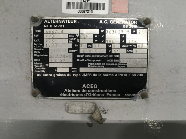 CUMMINS KT19G GENERATOR 275KVA USED