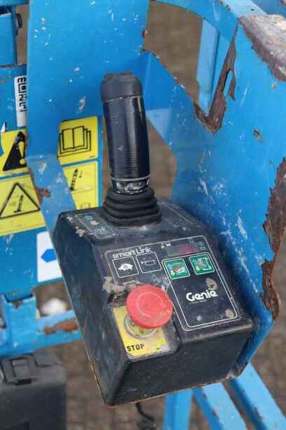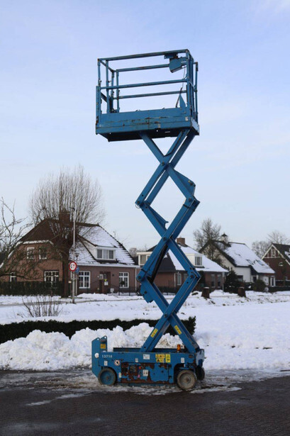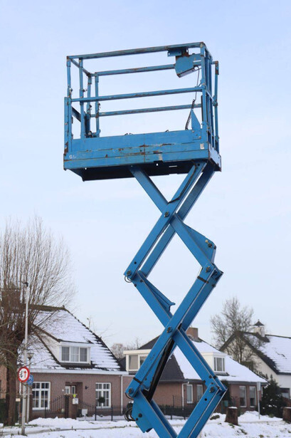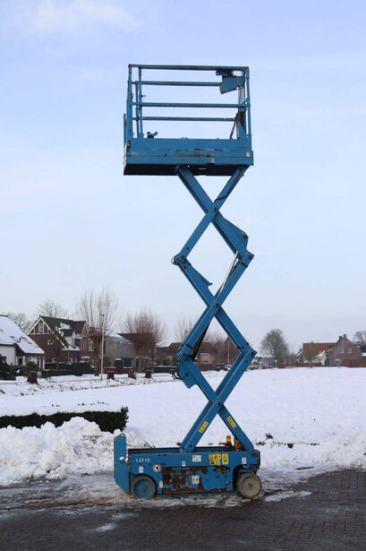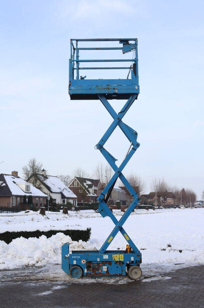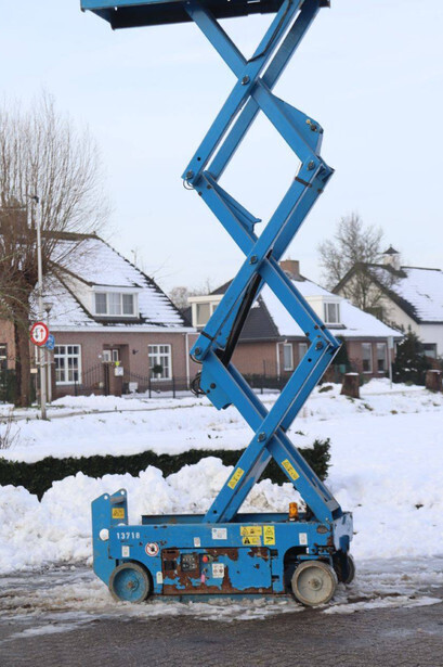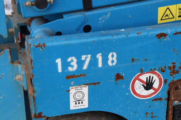 Brand: Genie Type: GS-1532 Serial number: 13718 Year of construction: Not known Fuel: Electric Lifting capacity: 272 kg Working height: 6 m Operating hours read: 526 h Machine weight: 1206 kg Chassis: Wheels Type: Scissor lift Tires: Non-marking tires Color: blue