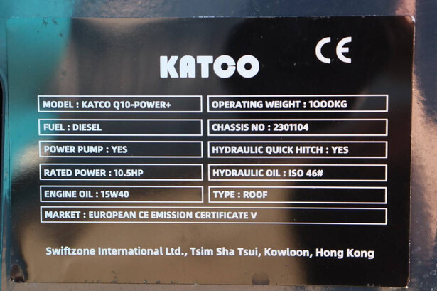 Brand: Katco Type: Q10-Power+ Serial number: 2301104 Fuel: Diesel Engine power: 10.5 HP Quick change: No Reading operating hours: 1 h Running gear: Tracks Machine weight: 1000 kg Color: blue