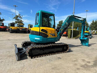 Brand: Kubota Type: KX161-3SZ Serial number: JKUK1613V01H80753 Fuel: Diesel Engine make and type: Kubota V2403 Engine power: 34.6 kW Cylinders: 4 Quick change: No Operating hours read: 9042 h Machine weight: 5675 kg Transport dimensions: 5600 x 2050 x 2700 mm Running gear: Tracks