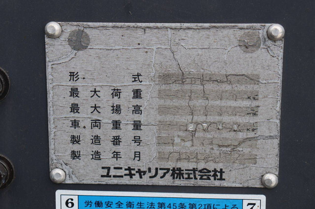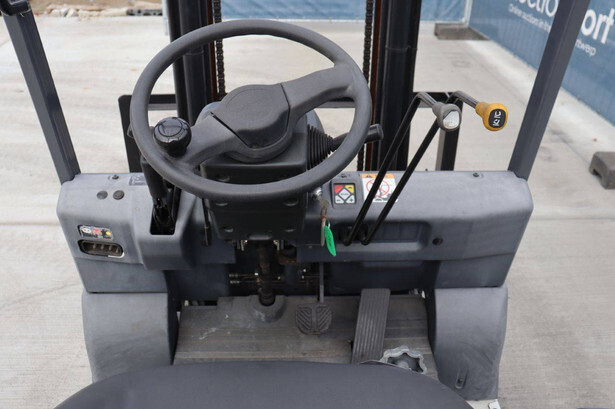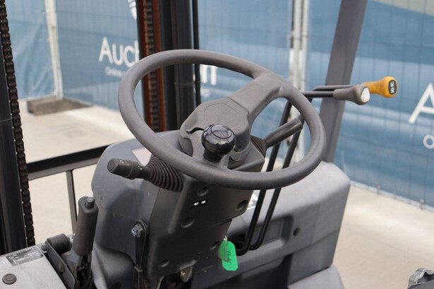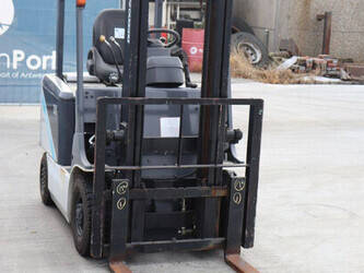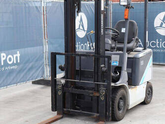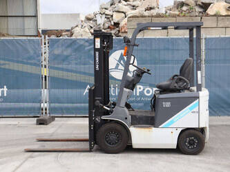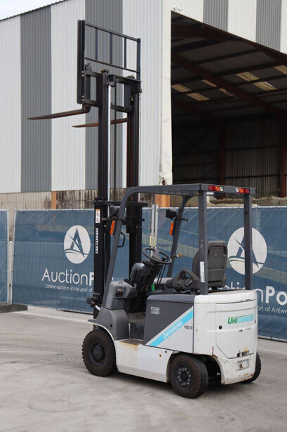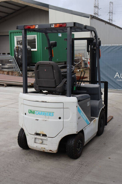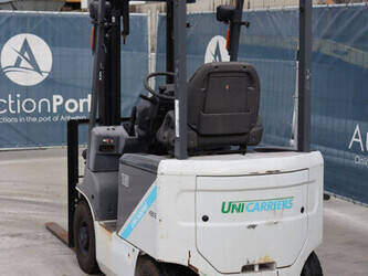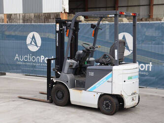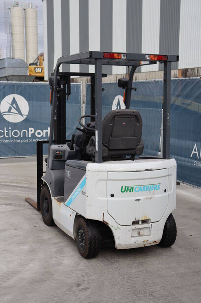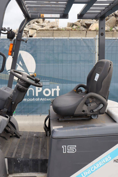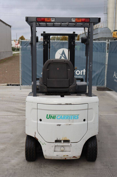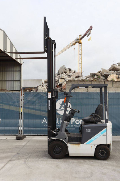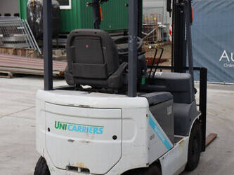 Brand: Unicarriers Type: 15 Fuel: Electric Mast type: Duplex Sideshift: No Lifting capacity: 1500 kg Lifting height: 3000 mm Operating hours read: 6994 h Machine weight: 2780 kg Tires: Pneumatic tires Color: white