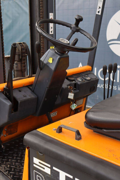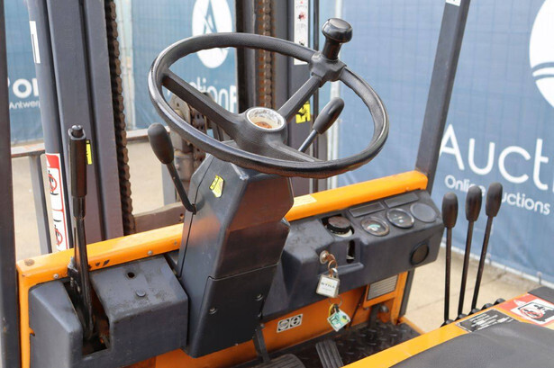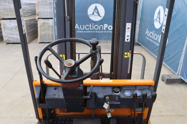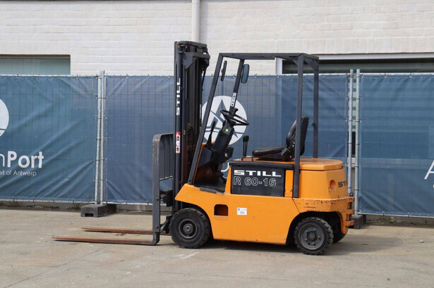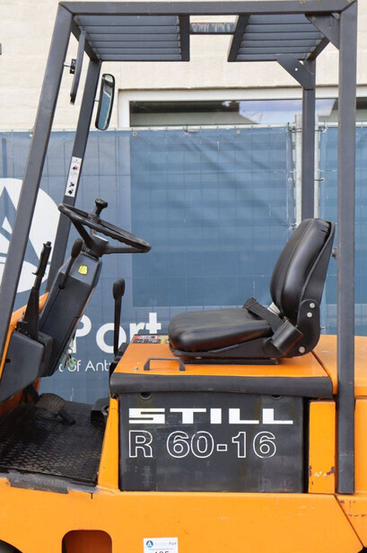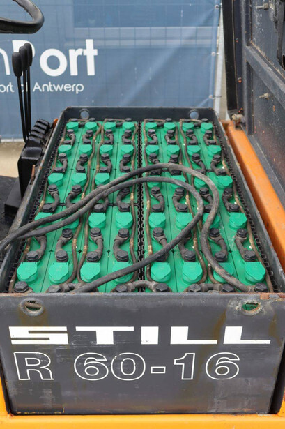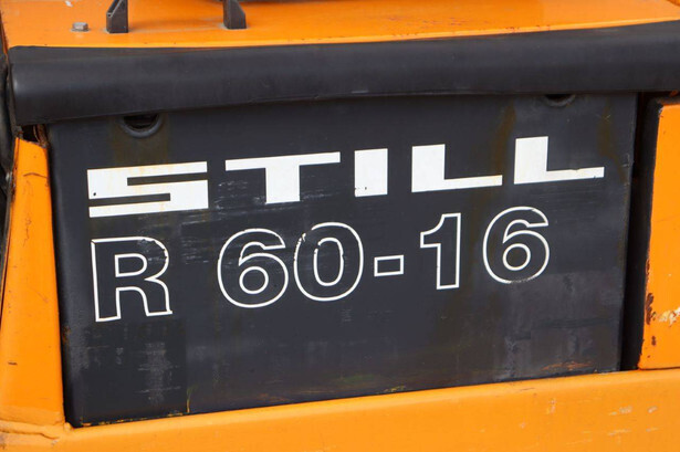 Brand: Still Type: R 60-16 Serial number: 60214732 Year of construction: 1995 Fuel: Electric Mast type: Triplex Sideshift: Yes Lifting capacity: 1325 kg Lifting height: 5490 mm Operating hours read: 6950 h Machine weight: 4960 kg Tires: Solid tires Color: orange