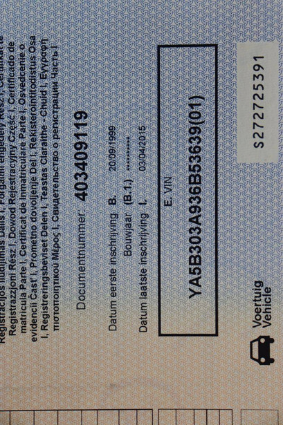 Chassis number: YA5B303A936B53639