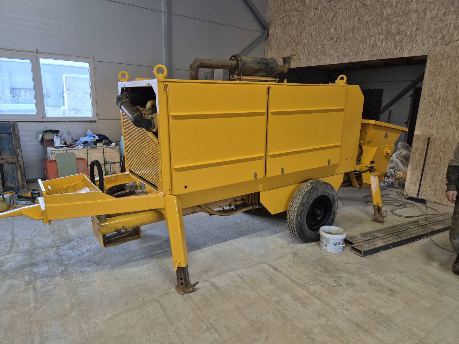For sale is a used stationary concrete pump in good condition.