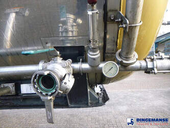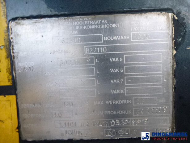 Insulated inox ( stainless steel) chemical tank trailer, Capacity 30000 liters, 1 Compartment, Tank material code 1.4404 EN 10028.7, Steam Heating, Test pressure 4.0 bar, Max work pressure 2.0 bar, Air suspension, SAF axles, Disc brakes, Alloy wheels, ABS, Shipment dimensions 1180x250x360 cm.
