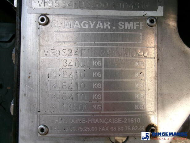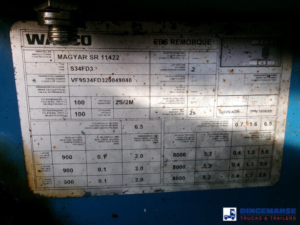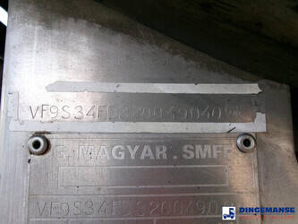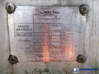 Bitumen tank, Insulated stainless steel, Capacity 29593 liters, 1 compartment, Test pressure 0.50 bar, Max working pressure 0.10 bar, Tank material code Z7CN 18.09, Hydraulic discharge pump, Air suspension, Alloy wheels, ABS, SMB axles, Disc brakes, Shipment dimensions 1065x255x365 cm