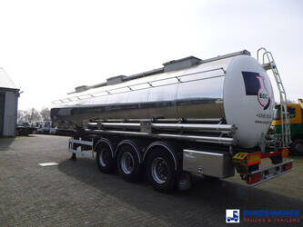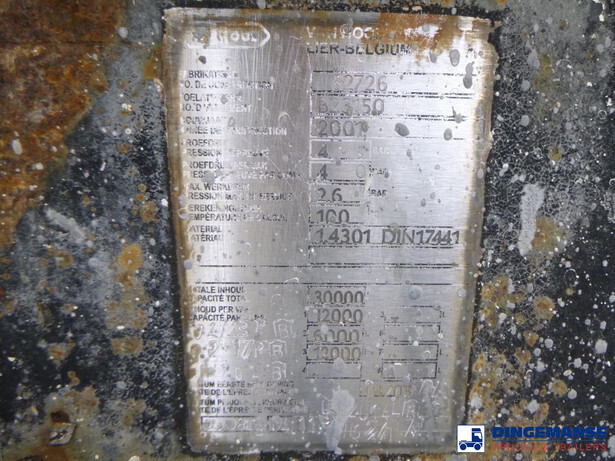 Insulated stainless steel (inox) chemical tank, Capacity 30000 liters, 3 compartments (12000;6000;12000), Tank material code 1.4301, Year of construction 2001, Test pressure 4.0 bar, Max working pressure 2.6 bar, Air suspension, Drum brakes, SAF axles, ABS, Shipment dimenions 1140x255x360 cm