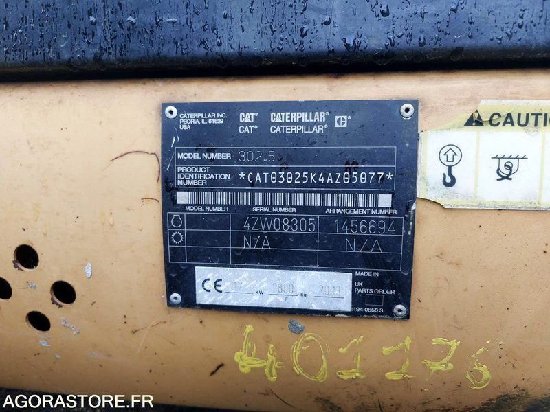 Caterpillar 302.5 Color: yellow Fuel: diesel FR: Type de véhicule Mini Pelle