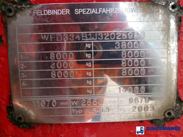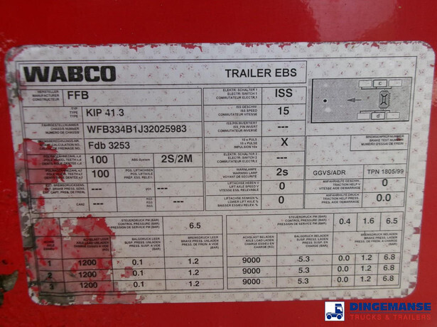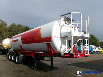 Aluminium tipping powder tank, Capacity 41000 litres, 1 Compartment, Max. working pressure 2.0 bar, Test pressure 3.0 bar, ABS, Air suspension, Drum brakes, BPW Eco Plus axles, Alloy wheels, Shipment dimensions 1120x250x365 cm