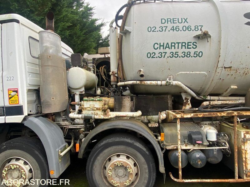 Mercedes-Benz 4140 Color: white Power: 400 Fuel: gas Axle suspension: spring/spring Axle 1 common tyre size: 13R22,5 FR: Date et lieu de visite: Sur RDV RAMBOUILLET 78 Dimensions (Longueur, Largeur, Hauteur): L 10,65 / l 2,55 H: 3,60 IMPORTANT: VENTE EN L'ETAT EXPORT UNIQUEMENT Caractéristiques techniques: Carrossage HUWER Paroi déplaçable pompes à vide + HP démontées Vendu tel que visible sur photos au niveau équipement Etat carrosserie: MAUVAIS Etat intérieur: Mauvais Etat des pneus: Usure 60% Cylindrée: 11946 V6 Climatisation: NON Transmission: PROPULSION PV / PTAC / PTRA: 19T160 / 32T / 35T5 Etat moteur boite pont: USURE GENERALE Echéance de PV des mines: 09/01/2022 Nombre de compartiments: 2 Webasto: NON Pompe à vide: SANS Pompe haute pression (HP): SANS Dernier passage aux mines: 09/01/2021 Ad Blue: NON Volume cuve: 16000 + 1500 Type de boîte de vitesses: SEMI ROBOTISEE Véhicule roulant mais ne servant de stockage sur site depuis 2022 N'a pas roulé depuis Peut se déplacer seul sur très courte distance pour chargement plateau Prévoir être autonome pour démarrage et chargement Ref No:413981 VIN: WDB9523171K794348