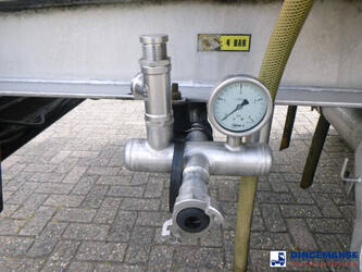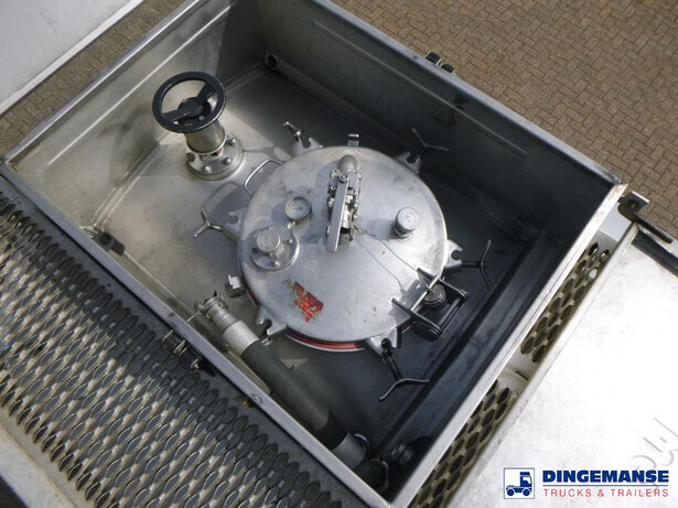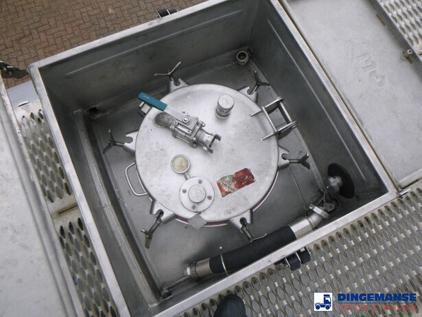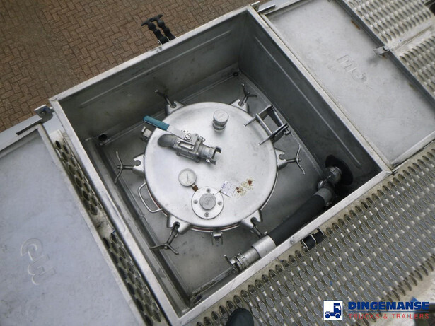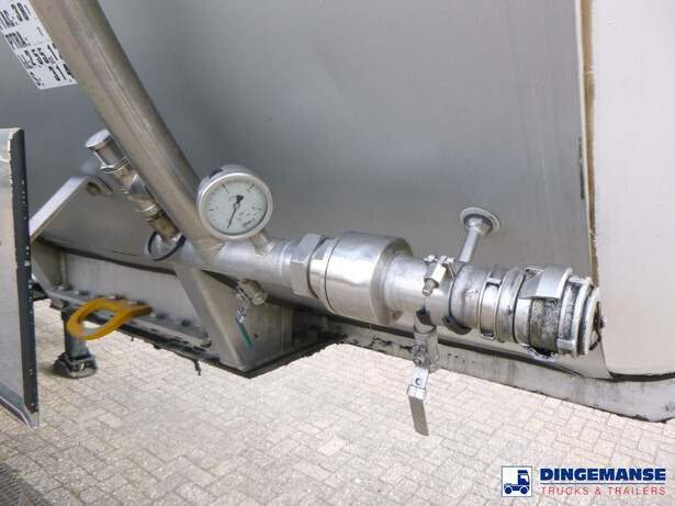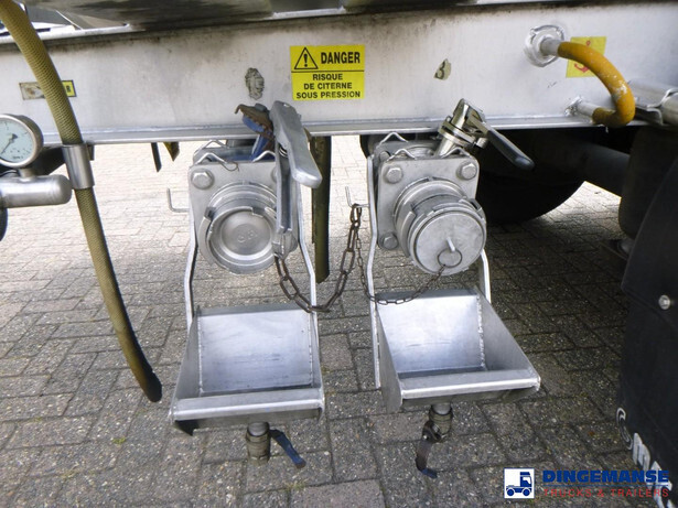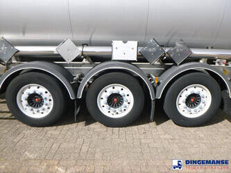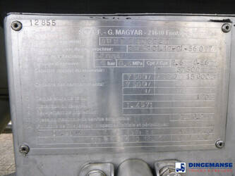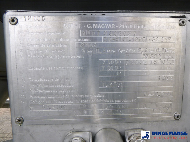 Insulated stainless steel (inox) chemical tank, Capacity 37500 liters, 4 Compartments (7500;7500;15000;7500), Year of constuction 2004, Tank material code 1.4571, Test pressure 4.0 bar, Max working pressure 2.0 bar, Steam heating, Air suspension, SAF axles, Disc brakes, Alloy wheels, ABS, Shipment dimensions 1230x250x360 cm