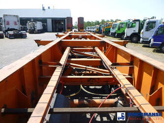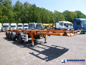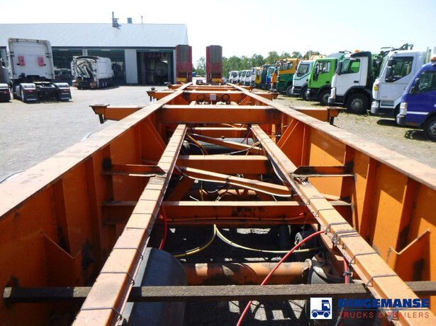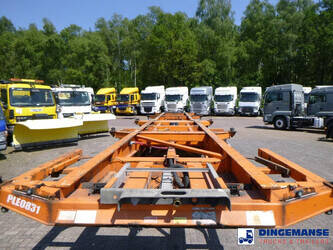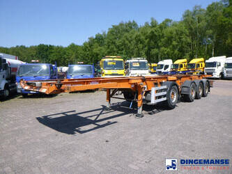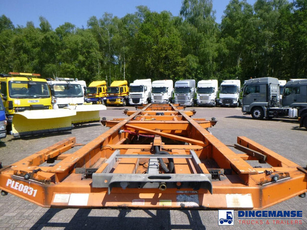 4-axle container trailer combination (1 x 20 ft on 1 axle plus 1 x 20 ft on 3 axles), Suitable for 2 x 20 ft, 1 x 30 ft, 1 x 40 ft and 1 x 45 ft containers, ABS, Ror axles, Air suspension, Disc brakes, 1st and 2nd axle lifting axle, Shipment dimensions 1240x255x120 cm
