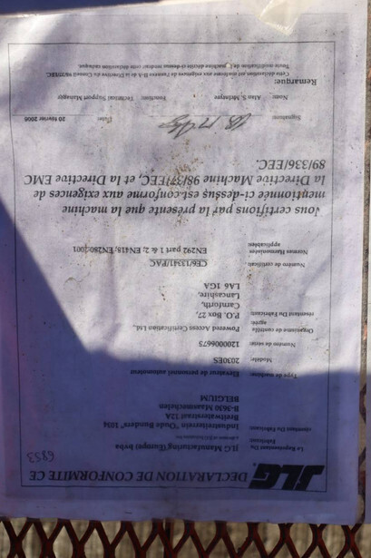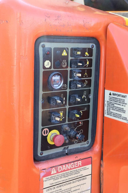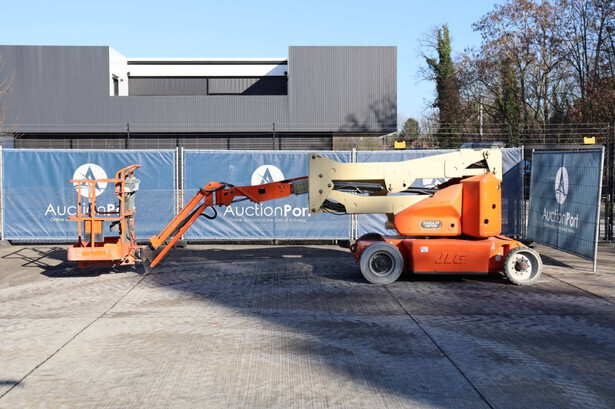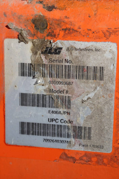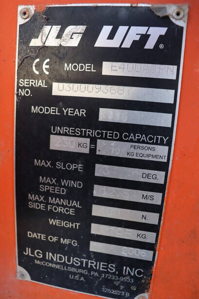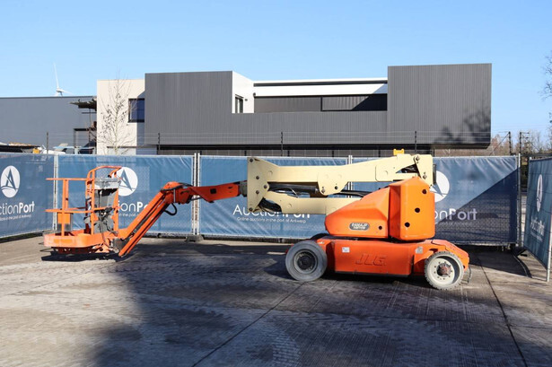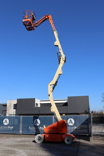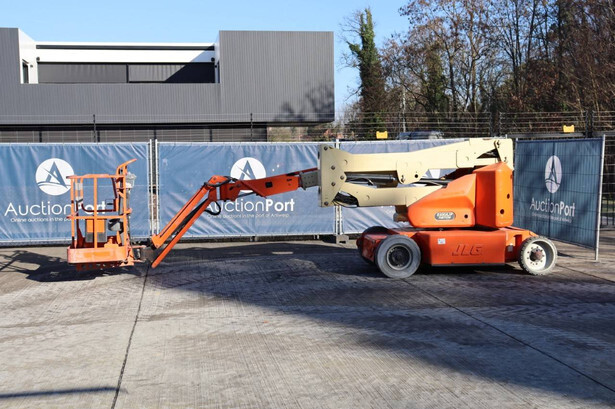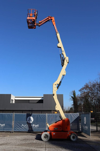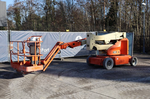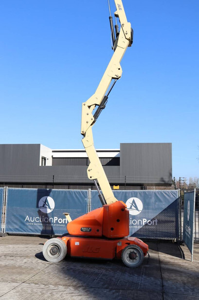 Brand: JLG Type: E400AJPN Serial number: 0300093687 Year of construction: 2006 Fuel: Electric Lifting capacity: 230 kg Working height: 14.19 m Operating hours read: 2788 h Machine weight: 6795 kg Chassis: Wheels Type: Articulated boom lift Tires: Solid tires Color: orange