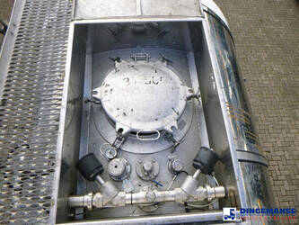 Capacity (liter): 37500 Number of compartments: 1 Compartment capacity (liters): 37500 Material code: 1.4404 Material tank: Inox Isolated: ✓ Heating: ✓ Heating type: Steam heating Test pressure: 4.0 bar Maximum working pressure: 2.6 bar Chemicals: ✓