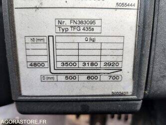 Jungheinrich DFG435s Fuel: gas Axle number: 2 FR: Type de véhicule CHARIOT ELEVATEUR Etat général: EXCELLENT ETAT VGP FOURNIE A LA VENTE IMPORTANT: VENTE EN L'ETAT Prix neuf: 52000.00 Lieu de visite: AYZE Année d'achat: 15/01/2019 Etat des pneus: Bon Charge maximale: 3500 KG / CDG : 500 Hauteur de travail max: 4800 mm CHARIOT ELEVATEUR GAZ 3T5 CABINE COMPLETE FERMEE,CHAUFFAGE,AUTORADIO CHARGE MAX : 3500 KG / CDG : 500 REVISION MOTEUR/COURROIE/POMPE A EAU/DISTRIBUTION MI 2024 VARIATEUR DE COMMANDES NEUF DITRIBUTEUR HYDRAULIQUE NEUF Ref No:RE48193