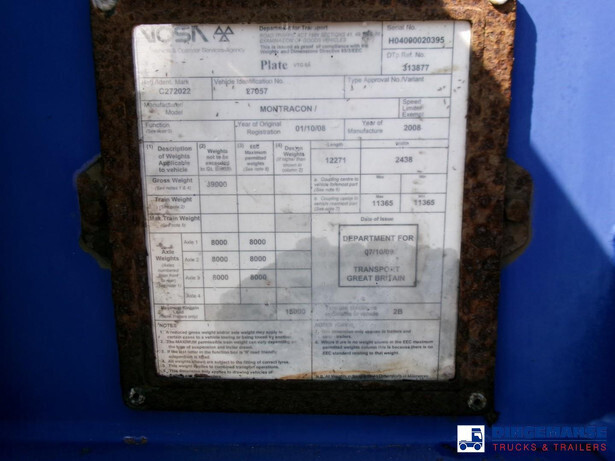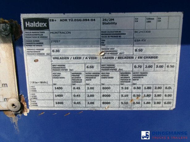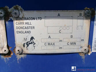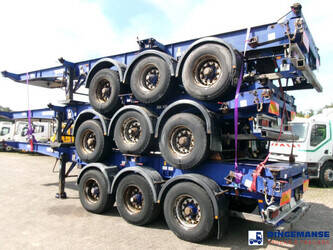 Stack of 3 Sliding container skeletal trailer, Montracon 2008, Suitable for 1 x 45 ft, 1 x 40 ft, 2 x 20 ft and 1 x 30 ft containers,, ABS, Air suspension, Gigant axles, Drum brakes, Tyres 385/65R22.5, King pin height 125 cm, Kingpin diameter 2 inches, Loading height 140 cm, Shipment dimensions : 1230x250x400 cm.