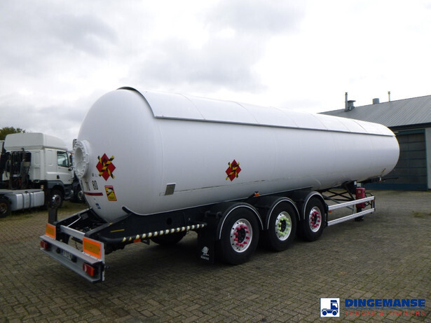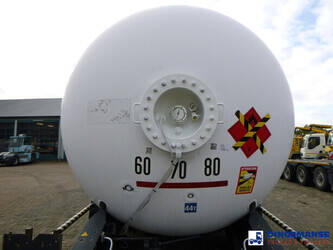 Robine steel gas (LPG) tank, capacity 51506 liter, 1 Compartment, Test pressure 25 bar, Max working pressure 19.3 bar, Year of construction 2008, Tank material code: P25BH // P 440 NJ4 NFA 36215, Air suspension, lift axle, Alloy wheels, ABS, Disc brakes, Mercedes axles, Shipment dimensions 1300x250x350 cm