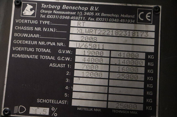 Brand: Terberg Type: 5301/B3AT Serial number: XLWRT222182318173 Year of construction: 2008 Fuel: Diesel Engine power: Not known Capacity: Not known Odometer reading: 13970 KM Machine own weight: Not known Tires: Solid tires Color: orange
