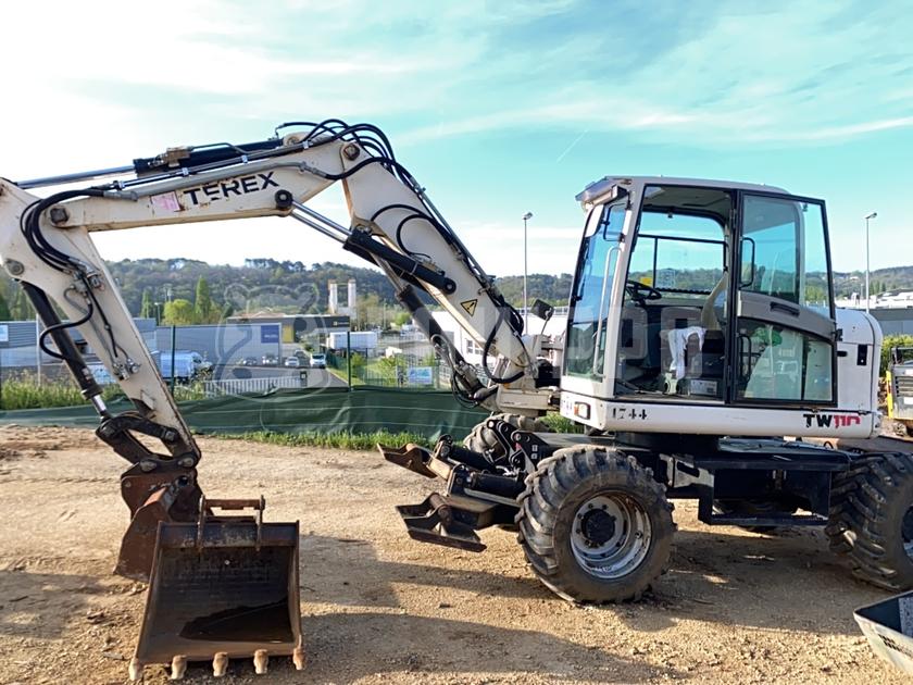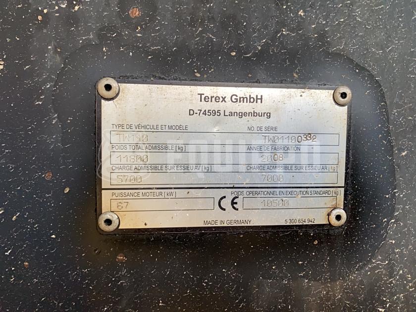 CE marked: NoGross weight: 10500Production country: GermanyVAT: 0.0Transport weight: 10500.0Other information: 2008 | Terex TW110 with two-piece offset boom and 3 buckets | Used Wheeled Excavator | 6787 hours