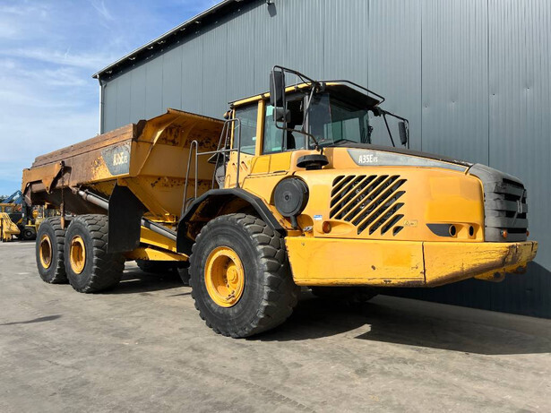 The Volvo A35E FS is an articulated dumper featuring a Volvo D12DACE3 engine with 309 kW power. This model is equipped with 6×6 drive, ensuring superb traction and stability. The machine includes an EROPS cabin for enhanced operator safety, air conditioning to maintain comfort in various climates, and is fitted with 26.5R25 Bridgestone tires. Additional features include a retarder, big tailgate, body extensions, and a backup camera, making it well-suited for demanding projects. It is in good and clean condition, offering reliability and efficiency.