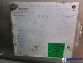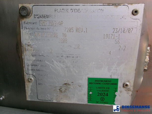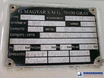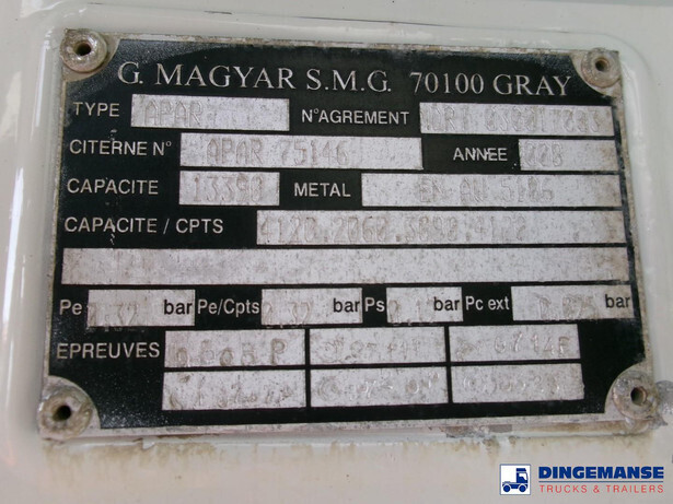 Magyar aluminium fuel tank, Capacity 13657 liters (netto), 13000 liters (nominal), 4 compartments (Net: 4210; 2092; 3174; 4181 // Nominal: 4000; 2000; 3000; 4000), Material code EN AW 5186, Test pressure 0.32 bar, Max working pressure 0.12 bar, Hydraulic discharge pump, Digital Counter, Hose reel, Vapour recovery, Optical overload sensor // Truck 4x2, Euro 4, Manual gearbox with 6 gears, Diff. lock, Tyres 315/70R22.5, Steel front suspension, Air rear suspension, Day cabin, Digital tachograph, Shipment dimensions 720x250x325 cm