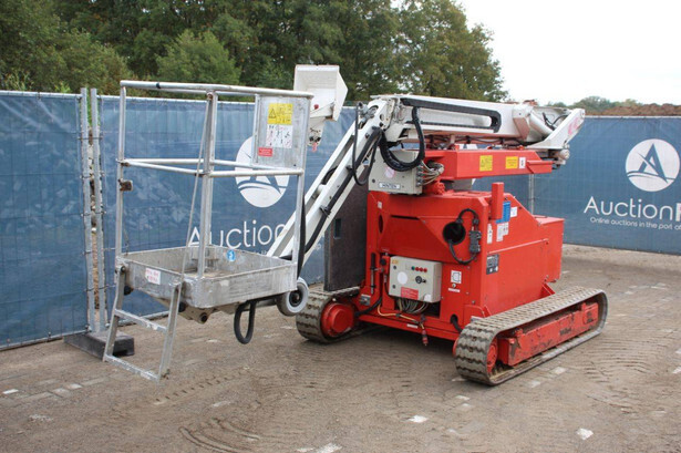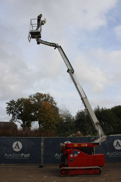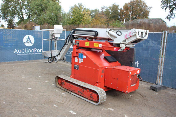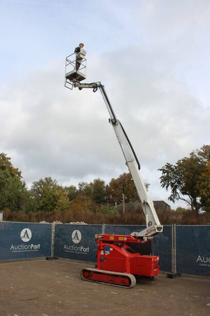 Brand: Teupen Type: LEO 12 T Serial number: 141180 Year of construction: 2009 Fuel: Diesel Lifting capacity: 120 kg Working height: 12 m Operating hours read: 6325 h Machine weight: 3077 kg Running gear: Tracks Type: Articulated boom lift Color: red