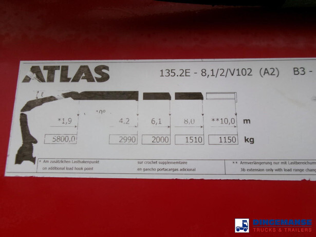Maximum crane load capacity : 2990 kg at 4.2 m, 2000 kg at 6.1 m, 1510 kg at 8.0 m