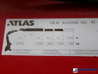 RIGHT-HAND DRIVE // NON-EU VEHICLE, REQUIRES CUSTOMS CLEARANCE // Atlas 135.2E-A2 loading crane, 2 Hydraulic extensions, Max. lifting capacities: 2990 kg at 4.2 m, 2000 kg at 6.1 m, 1510 kg at 8.0 m; Max. horizontal reach: 8.0 metres, 2 Support legs, Radio remote control, Year of manufacture 2011 // Truck 6x2, Automatic gearbox (2 pedals), Diff. lock, Euro 5 engine, AdBlue, Steel suspension front / Air suspension rear, Open box, Dimensions 830x245x60 cm (12 m3), Floor height 135 cm, Headboard height 185 cm, Day cabin, Digital tachograph // Shipment dimensions 1160x250x360 cm