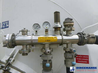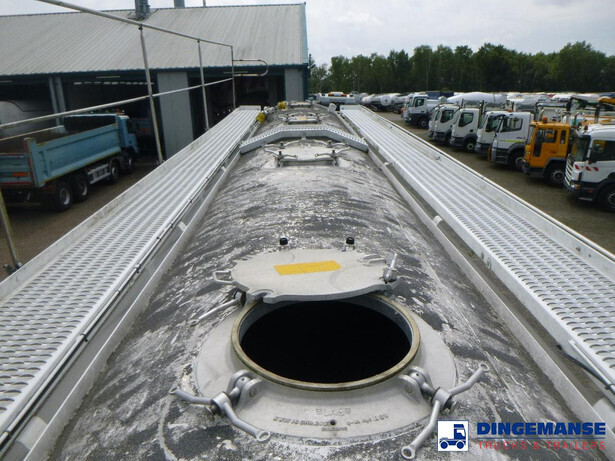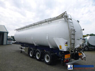 Aluminium powder tank with tipping system, Capacity 58000 liters, 1 Compartment, test pressure 2.86 bar, Max. working pressure 2.0 bar, Mercedes axles, ABS, Disc brakes, Air suspension, 1st axle lifting axle, Alloy wheels, Shipping dimensions: 1263x245x375 cm