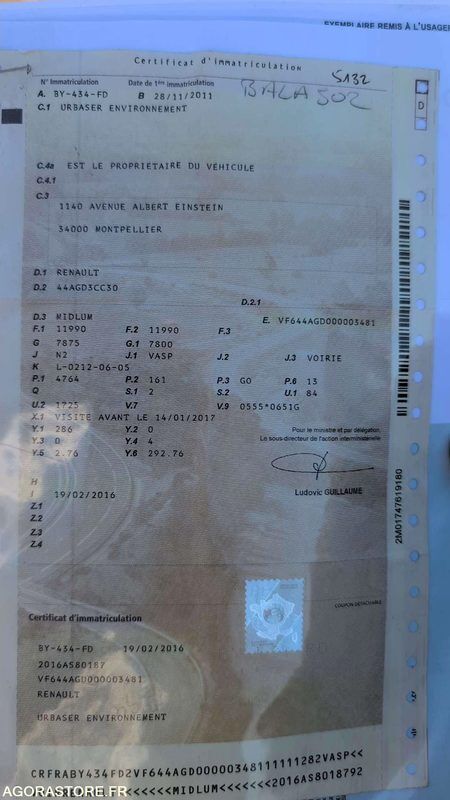 Renault MIDLUM FR: Véhicule roulant Moteur tournant Un rapport d'inventaire est fourni dans la rubrique « documents » Ref No:416556 VIN: VF644AGD000003481