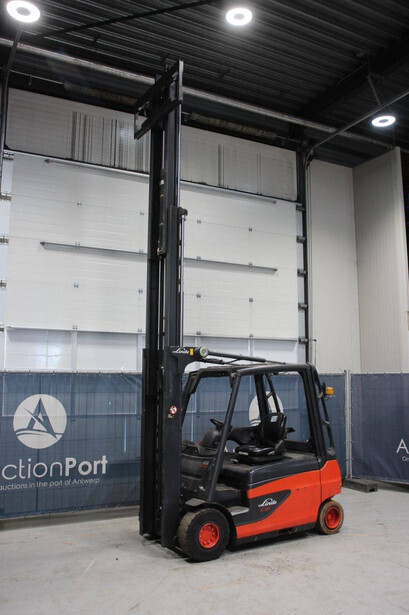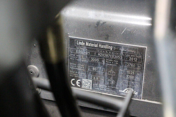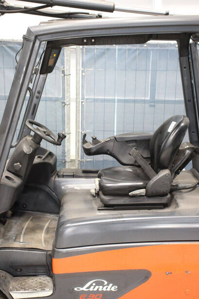 Brand: Linde Type: E30L-01 Serial number: H2X387C03053 Year of construction: 2012 Fuel: Electric Mast type: Triplex Sideshift: Yes Lifting capacity: 3000 kg Lifting height: 4600 mm Operating hours read: 6233 h Machine weight: 5291 kg Tires: Non-marking tires Color: orange