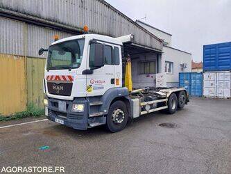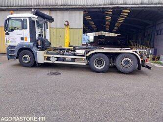 MAN 26.400 Color: white Fuel: gas Euro: 5 Axle number: 3 Axle suspension: air/air Gearbox type: automatic FR: Type de véhicule PORTEUR POLYBENNE IMPORTANT: VENDU EN L'ETAT PV / PTAC / PTRA: PV: 11,34t ; PTAC: 26,1t ; PTRA 44,1t Crit'air: CRIT'AIR 3 Dernier passage aux mines: 13/02/2025 R52059 - PORTEUR POLYBENNE DE 2012 - CHÂSSIS MAN - BRAS GUIMA PALFINGER - 616934 km ESSIEU ARRIÈRE RELEVABLE Système de bâchage HY-TOWER avec filet à remplacer Barre anti-encastrement ne sort plus (possible souci de capteur) Véhicule roulant situé à Sausheim (département du Haut-Rhin) Ref No:WK47574 VIN: WMA18SZZ1CW166719