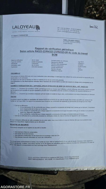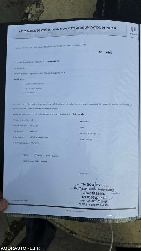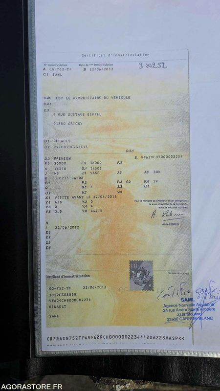 Renault PREMIUM Axle number: 3 FR: Véhicule roulant Moteur tournant Un rapport d'inventaire est fourni dans la rubrique « documents » Ref No:411796 VIN: VF629CHB000002234