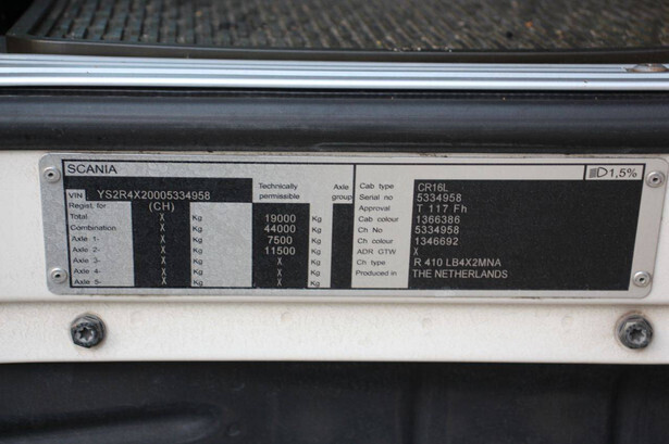 Brand: Scania Model: K410 Chassis number: YS2R4X20005334958 Year of construction: 2013 Fuel: Diesel Engine power: 410.0 HP Transmission: Manual Odometer reading: 804,498 km Color: white