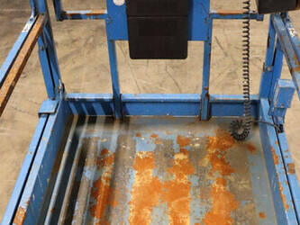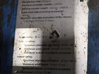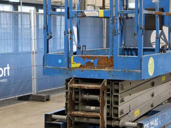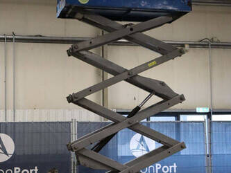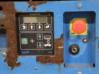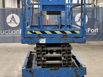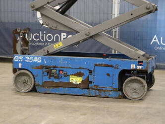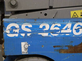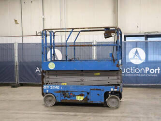 Brand: Genie Type: GS-2646 Serial number: GS4614C-12502 Year of construction: 2014 Fuel: Electric Lifting capacity: 454 kg Working height: Not known Reading operating hours: 515 h Machine weight: 2469 kg Chassis: Wheels Type: Scissor lift Tires: Non-marking tires Color: blue Options: Electronic display Including charger Machine description: Machine starts, drives, lifts and lowers.
